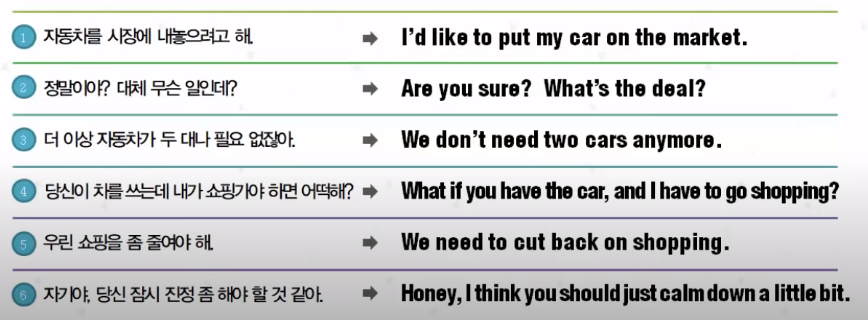 더 이상 자동차가 두 대나 필요 하잖아. We don't need two cars anymore.