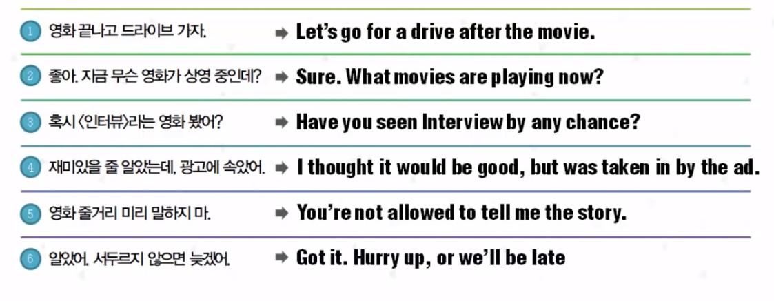 영화 끝나고 드라이브 가자. Let's go for a drive after the movie.