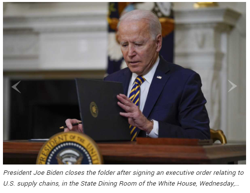President Joe Biden has signed an executive order that is intended to boost manufacturing jobs by strengthening U.S. supply chains for advanced batteries, pharmaceuticals, critical minerals and semiconductors